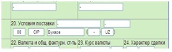 — при указании буквенного кода страны во втором подразделе графы 20, а именно в тех случаях, когда географический пункт расположен внутри страны  (а не на границе двух стран), то при электронном декларировании код страны необходимо указывать в первой ячейке, отведенной для буквенного кода, а не во второй,