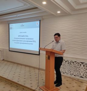 Хакимов О. наглядно продемонстрировал участникам конференции поэтапный алгоритм действий по ведению программы E-transit в разрезе приграничных таможенных постов и с динамикой оформления.