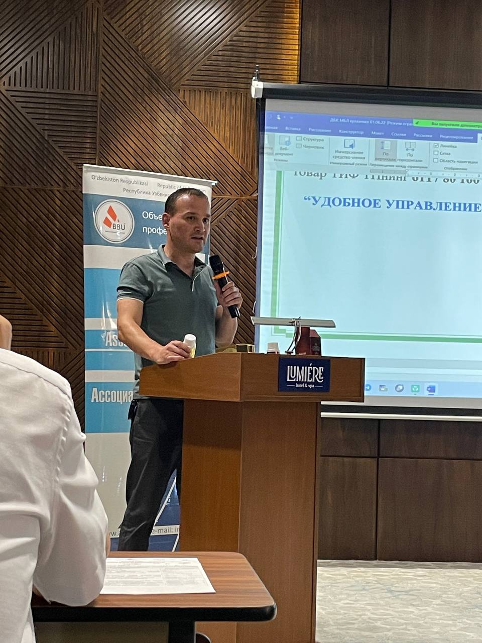 С сообщением о перспективах развития законодательной базы в сфере технического регулирования выступил Хайридинов Музаффар Хамидович, начальник «Отдела координации сертификации» Узбекского центра научных испытаний и контроля качества.
